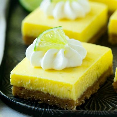 Prior to serving, cut the bars into 9 equal pieces and prepare the whipped cream topping.