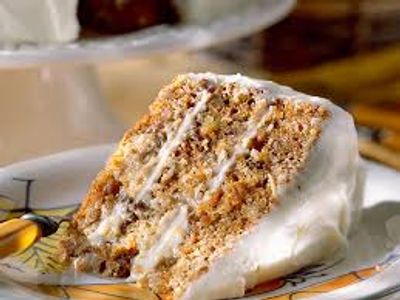 In a medium bowl, combine the dry ingredients (flour, baking soda, salt, cinnamon, nutmeg and ginger in medium bowl). In another, larger bowl, stir together the sugar and oil until the sugar is saturated by the oil. Beat in the eggs, one at a time. Add the flour mixture, and fold with a rubber spatula until just combined. When the flour’s almost stirred in, add the carrots, raisins, and walnuts, still being careful not to overmix. Divide batter equally among cake pans.